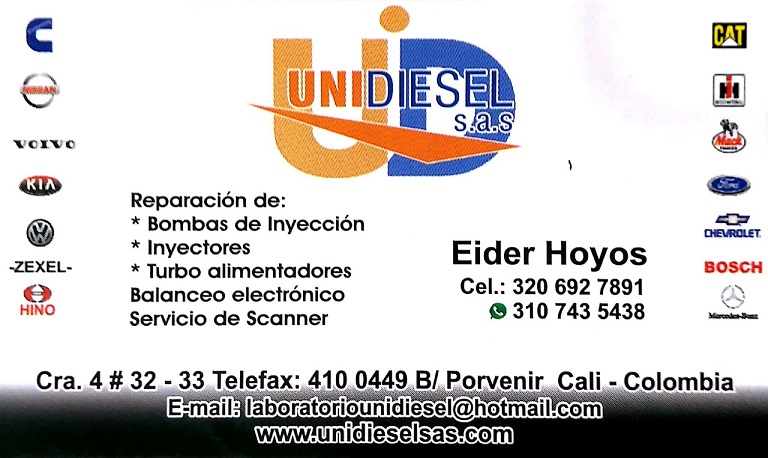 LABORATORIO DE INYECCION UNIDIESEL S.A.S: Mantenimiento y Reparación de Bombas de Inyección, Inyectores y Turboalimentadores Diesel, también prestamos Servicio de Scaner y Servicio a Domicilio.