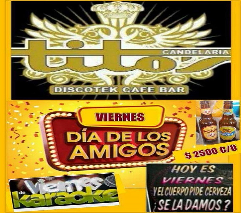 TITOS CANDELARIA: Los invita a la Mejor Rumba Crossover de la ciudad Eventos Permanentes, Amenizamos todo tipo de Evento Social, Empresarial o Familiar, abierto todos los fines de semana. Titos Restaurante Espectacular Menú diario, Platos a la carta Carnes Asados y mas. Ubicados en la esquina del Parque Principal Mirador.