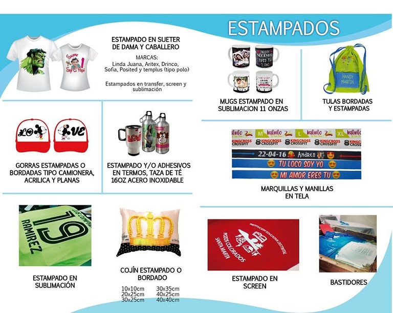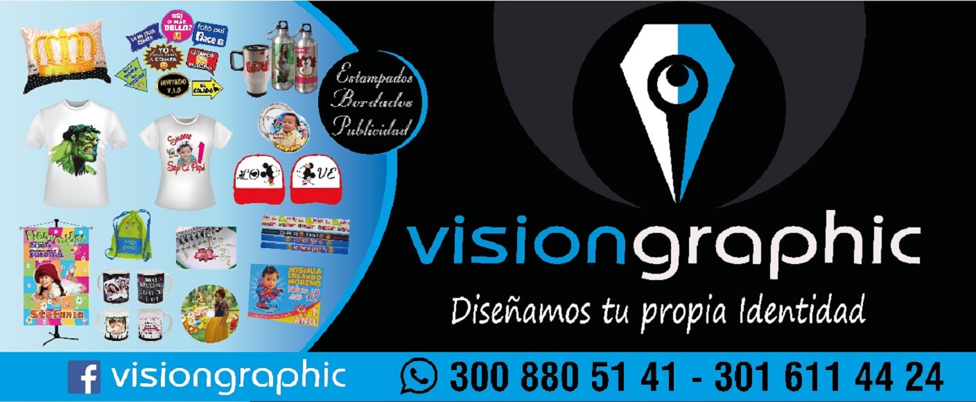 VISION GRAPHIC: Estampados, Bordados, Volantes, Tarjetas de Presentación, Pendones, Mugs, Botones, Manillas, Gorras personalizadas, Tulas, Suéter, Souvenires. Diseño Gráfico y todo lo relacionado con Publicidad.