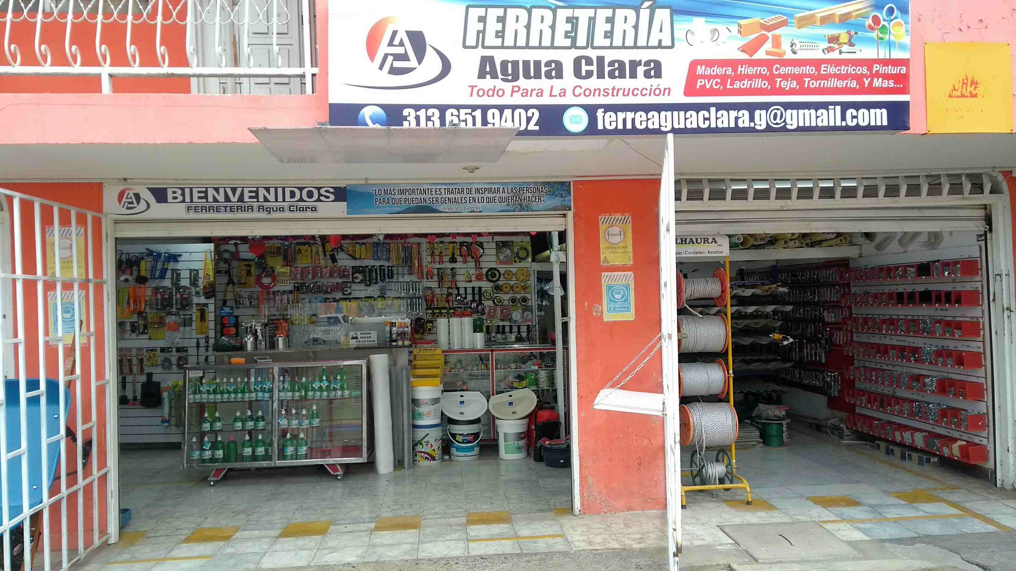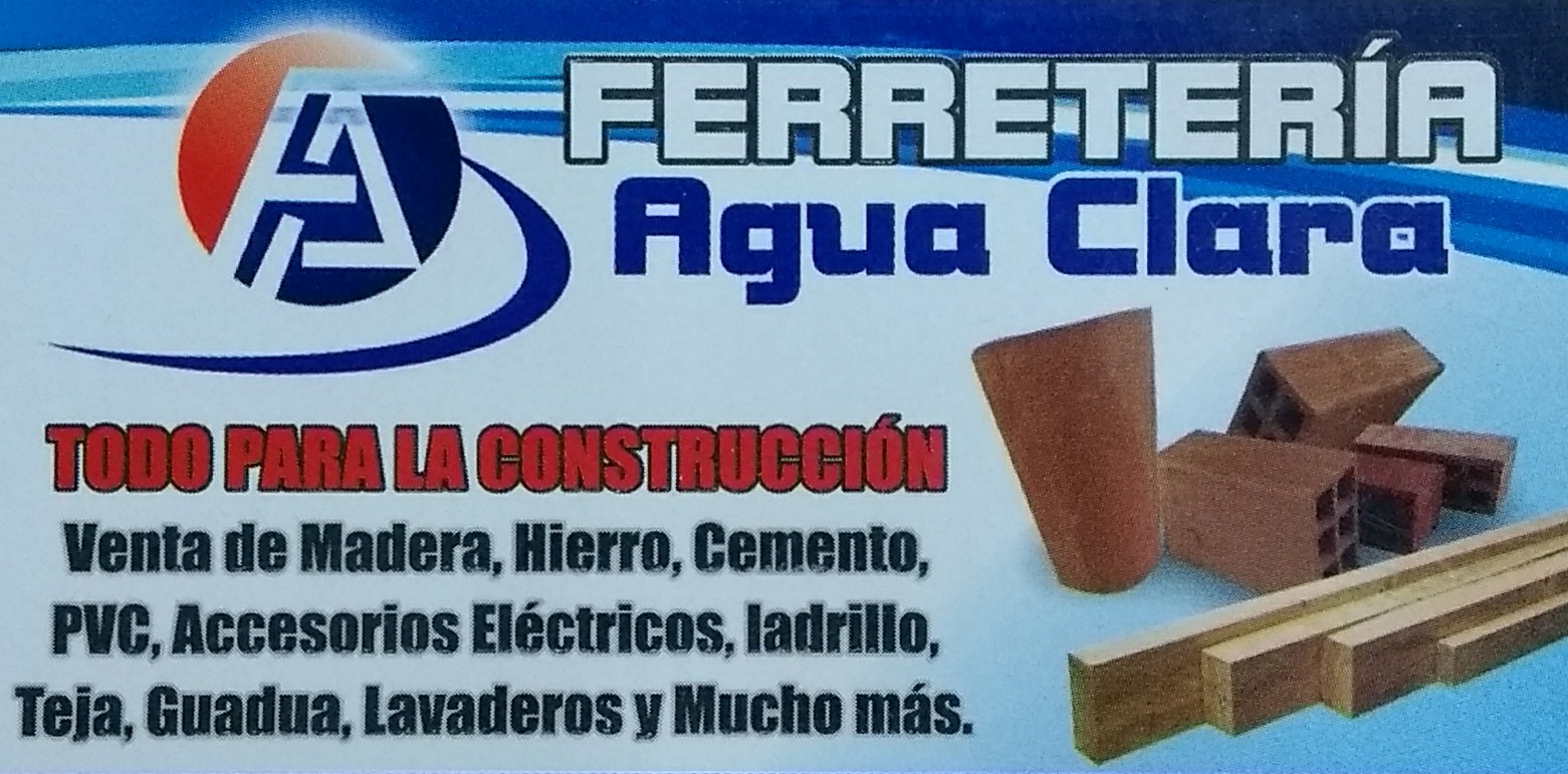 FERRETERÍA AGUA CLARA S.A.S: Con más de 10 años haciendo presencia en el sector de la Construcción, nos caracterizamos por practicar un comercio justo en el Sector Público y Privado, como Constructoras y clientes comunes; agregando alta calidad en servicio al cliente. Somos especialistas en Venta de todo tipo de Madera, Material de Patio, Material de Río, todo tipo de Ladrillo, Cemento, PVC, Hierro, Herramienta, Tornillería, Pintura y Eléctrico. Productos para Obra Blanca y Obra Negra. Visítanos por medio de nuestros Canales Digitales ó de manera presencial. FERRETERÍA AGUA CLARA S.A.S tendrá el honor de atenderles.